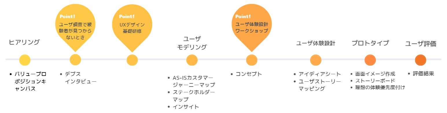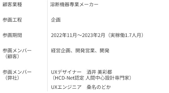 顧客はシステム開発企画の経験がなく、企画そのものに関する知識やUXデザインの取り入れ方の知見が豊富ではなかったため、このサービスを提案した。