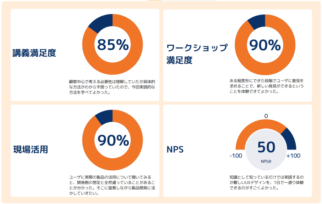 研修内のテーマに対して実際UXデザインを実践してみることにより多くの気づきや学びが得られたと受講者からコメントを頂いた。