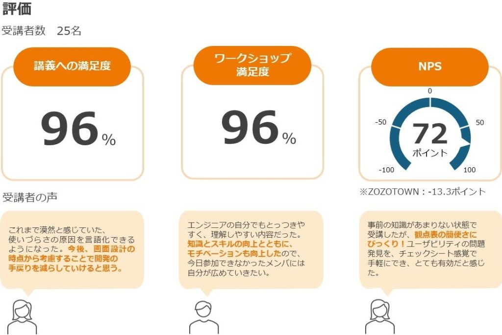 半日の研修ではあるが、自社に持ち帰って実践できそうだという手ごたえを感じる受講者の方が非常に多く、受講できなかったメンバにも受けさせたい、展開したいという声をいただいている。