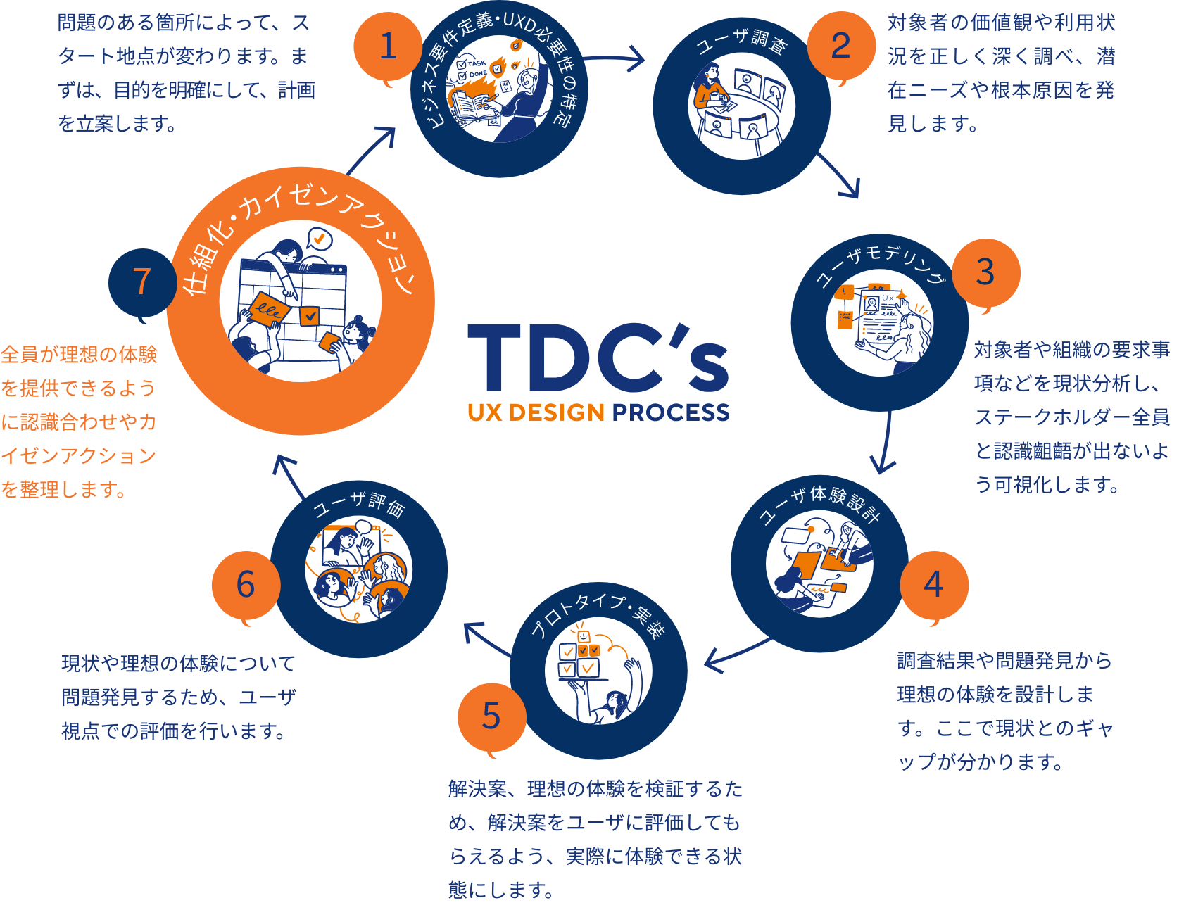 TDCソフトでは、これからUXデザインに取り組まれるお客様を多角的にご支援可能なサービスをご用意しています。