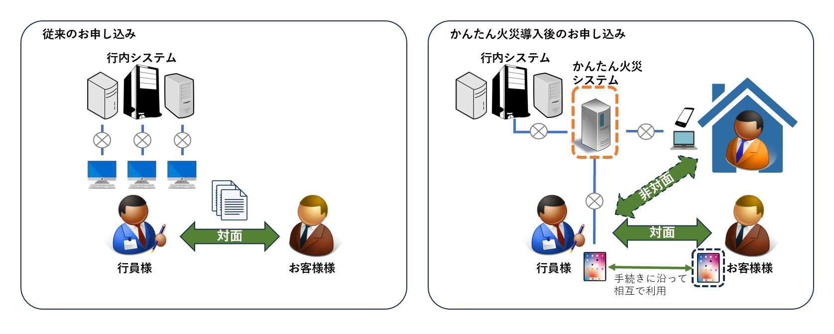 This system digitizes the pre-contractual fire insurance solicitation and application procedures to achieve seamless paperwork, enabling customers to collectively identify the parties to whom they are calling for fire insurance and to check the progress in real time. The system will reduce the burden of filling out forms by half, greatly reduce omissions and other deficiencies, and speed up internal procedures for efficient transactions.