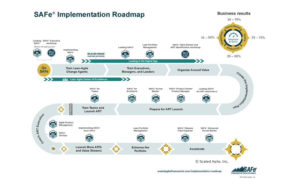 Organizations applying SAFe are transforming the way they work through Agile principles and practices, improving employee engagement, time to market, team productivity, product and solution quality, and business agility.