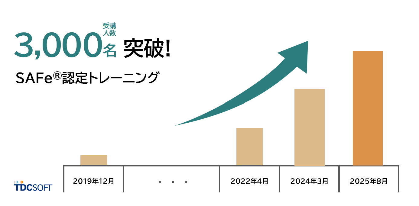 TDCソフト株式会社(代表取締役社長:小林 裕嘉、以下:当社)は、Scaled Agile, Inc.(本社:米国コロラド州、CEO:Steve Matthesen)が提供する、大規模組織におけるアジャイルを推進するためのフレームワークであるSAFe®(Scaled Agile Framework®)の認定トレーニングにおいて、累計受講者数が2025年8月時点で3,000名を突破(※1)したことをお知らせいたします。