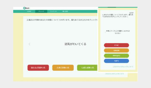 また、原則年に1回の定期チェック以外の時期にも、いつでも気軽にセルフチェックできるよう、心身状況に焦点を絞ったフリーチェックをオプションとして提供しています。