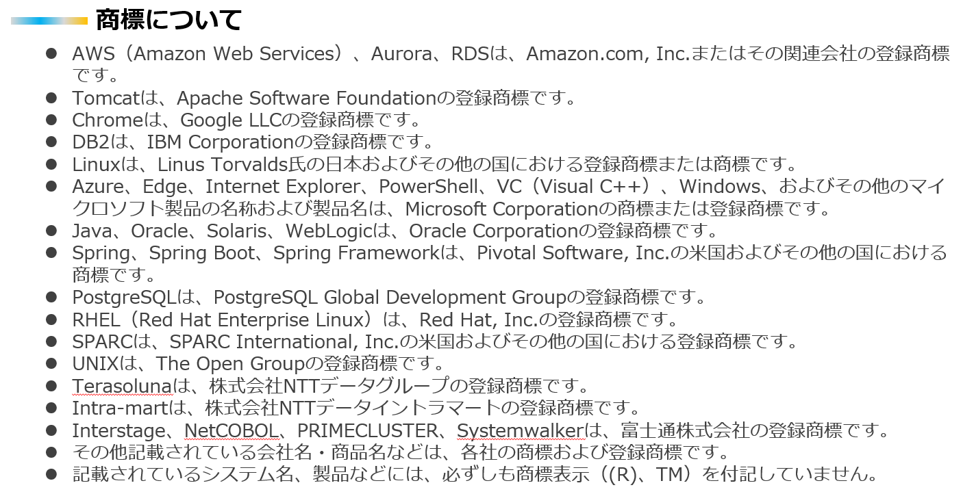 UNIX環境からの移行には、周辺の各種ソフトウェアのなどのバージョンアップや変更などの要素も伴います。代表的な移行要素は下図の通りです。