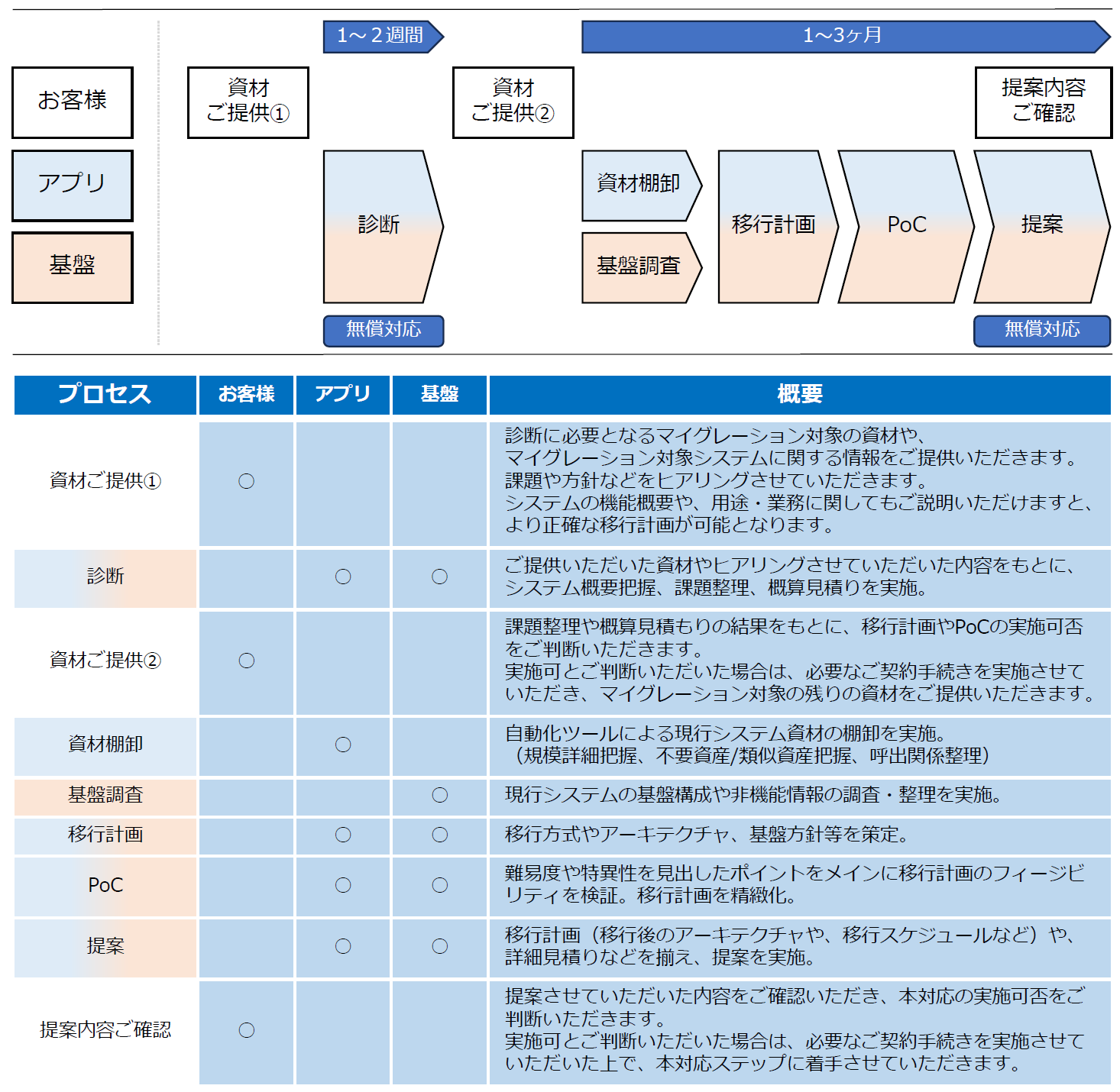 マイグレーションを成功させるためには、事前の診断やPoC(概念実証)などのステップを踏むことが不可欠です。これらのステップを通じて、現行システムの詳細な理解や潜在的なリスクの特定、移行計画の検討を行うことで、移行中のプロセス不備を未然に防ぎ、コストや時間の無駄を最小限に抑えます。