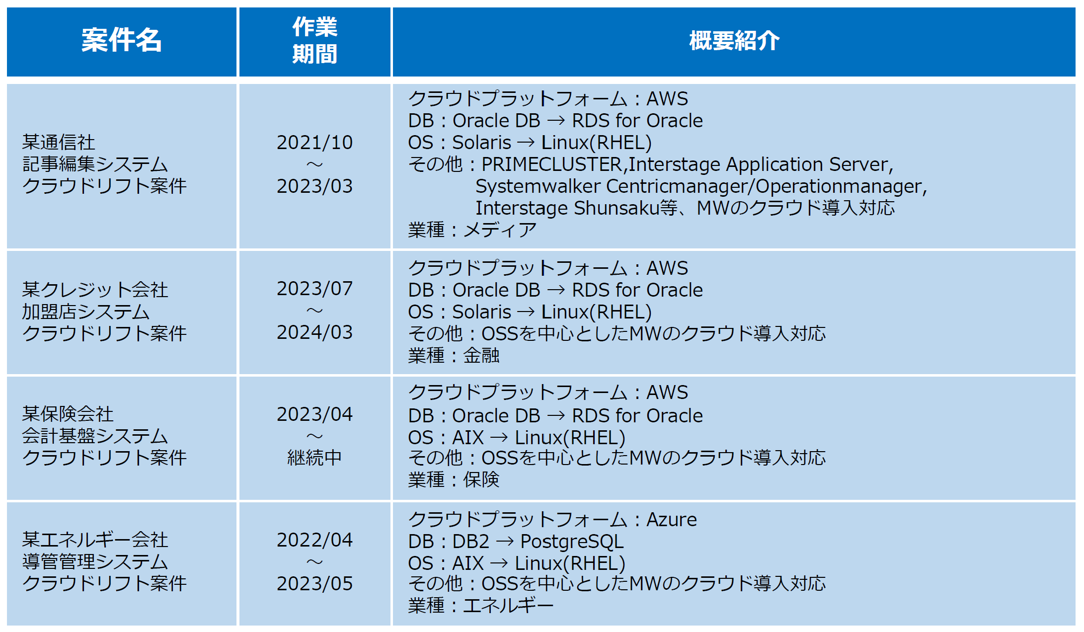 弊社のマイグレーションサービスは、UNIXサーバからクラウドへの移行を数多く経験している専門の部門がインフラ移行を対応いたします。これにより、お客様の現行資材やご要望(機能要件、非機能要件)に合わせたご提案が可能となっています。