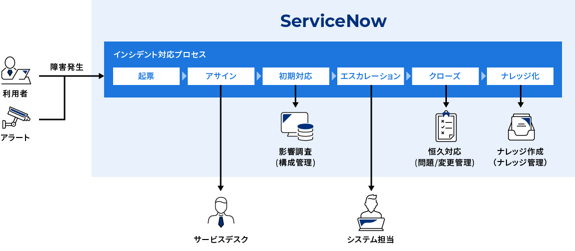ServiceNowを導入することで、インシデント対応プロセスの省力化とナレッジ活用による効率化が実現できます。