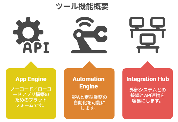 これは、非エンジニアでも活用できる開発基盤であり、以下のような構成になっています。