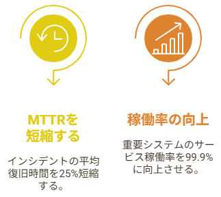 • 「インシデント一次対応の平均復旧時間(MTTR)を現状より25%短縮する」
