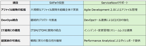 SAFeは、内製化のために大規模アジャイルを推進する上で不可欠なフレームワークであり、ServiceNowはその実装を支える強力なプラットフォームとなります。特に、ITSM、DevOps、アジャイル開発を統合することで、企業全体の俊敏性を向上させ、内製化の成功を支援します。