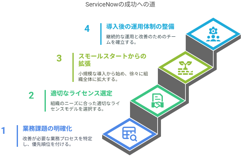 ServiceNowの導入を成功させるためには、以下のポイントを意識することが重要です。